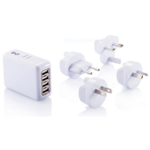 Adattatore con 4 porte USB per ricaricare tutti i dispositivi quando si – in viaggio. Il potente output da 3.1A permette di ricaricare più dispositivi contemporaneamente. AC Max 240V/350mA, USB Max 5.25V/3.1mA DC. Comprende 4 connettori. Dimensioni articolo: 7,5 x 5,5 x 2,9 cm. Materiale: ABS.