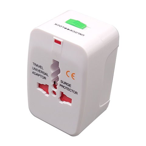 Adattatore Universale da viaggio. Compatibile con prese dei paesi: Inghilterra, Germania e USA. Ingresso AC, tensione: 85-250V. Massima corrente in uscita: 6A, potenza: 1500 W. Colore bianco . Confezione in blister.