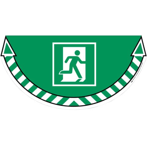 Adesivo da terra per segnalare uscite di sicurezza in zone delimitate, al fine di guidarne l?accesso.
