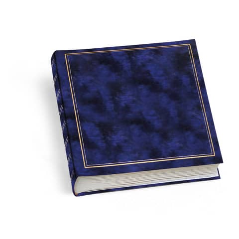 Album composto da 40 fogli in cartoncino e copertina in Vinyl. Formato: 25 x 30 cm. Colore blu.