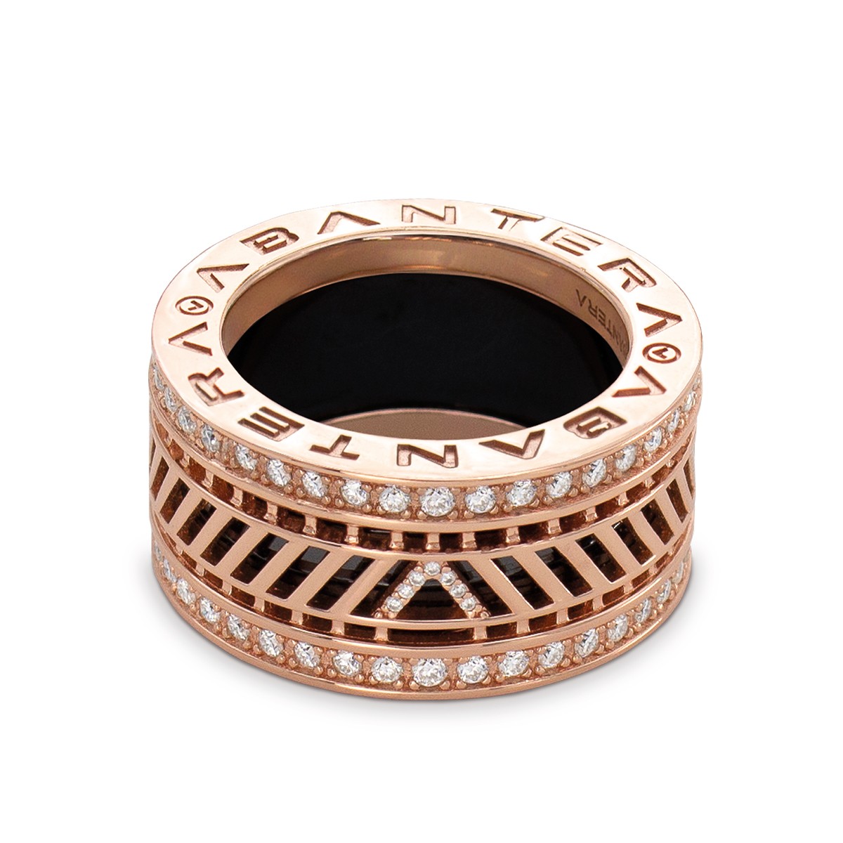 Anelli unisex Mélanie di alta gioielleria, in elegante oro rosa 18k con 94 moissaniti Charles & Colvard incastonate su ceramica. Certificati a livello internazionale per qualità, autenticità e valore.