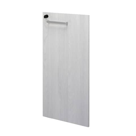 Anta in nobilitato melaminico di spessore 18 mm, con maniglia color grigio alluminio, serratura e cerniere ammortizzate.
