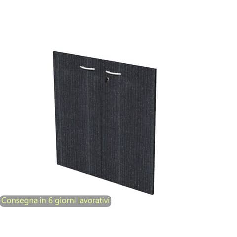 Ante realizzate in materiale bilaminato nobilitato melaminico, di 18 mm di spessore, dotate di serratura. Dimensioni 80xH.67 cm, colore nero venato frassino. Peso totale imballi 50 kg.