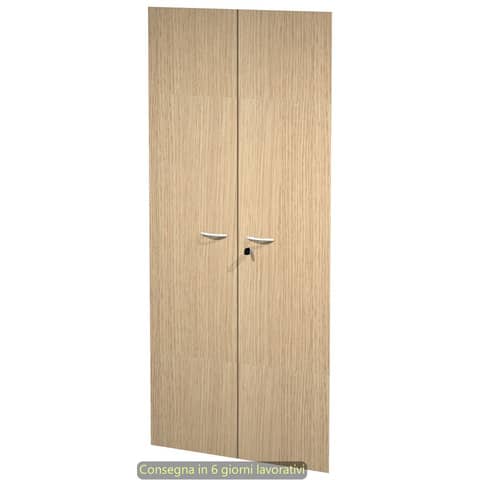 Ante realizzate in materiale bilaminato nobilitato melaminico, di 18 mm di spessore, dotate di serratura. Dimensioni 80xH.175 cm, colore rovere. Peso totale imballi 50 kg.