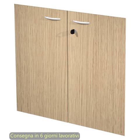 Ante realizzate in materiale bilaminato nobilitato melaminico, di 18 mm di spessore, dotate di serratura. Dimensioni 80xH.67 cm, colore rovere. Peso totale imballi 50 kg.