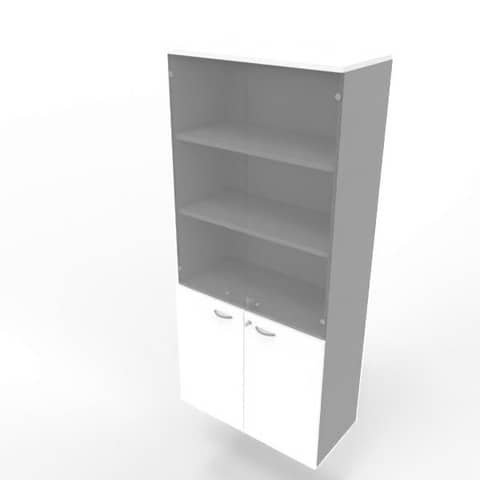 Armadio super con ante base melaminico e ante maxi in vetro e scocca in pannello di conglomerato ligneo spessore 18 mm, rivestito su entrambi i lati con pannello melaminico antiriflesso, antigraffio e lavabile. Fianchi e fondo spessore 18 mm con bordatura sui 4 lati in tinta. Schienale spessore 8 mm. Ripiani spessore 25 mm con bordatura 4 lati in tinta e reggipiani a scomparsa spostabili in altezza ogni 32 mm. Coperchio spessore 25 mm con bordatura 3 lati in vista in ABS antiurto, in tinta, spessore 2 mm. N. 5 piedini livellatori in ABS regolabili in altezza dall’interno del mobile. Ante battenti in pannello di conglomerato ligneo spessore 18 mm rivestito con melaminico antiriflesso, antigraffio e lavabile, bordato sui 4 lati in ABS antiurto in tinta spessore 1,5 mm. Cerniere in metallo con apertura a 105?. Serratura con chiave pieghevole antinfortunistica. Ante in vetro trasparente spessore 4 mm con spigoli smussati e 4 lati bordo lucido. Cerniere in metallo e nylon con apertura a 90?. Serratura con chiave pieghevole antifortunistica. Scocca grigio argento. Finiture bianco. Dimensione: 90x45xH.200 cm. Quadrifoglio Sistemi d’Arredo presta particolare attenzione alle tematiche della qualità , dell?ambiente e della sicurezza per fornire un prodotto e un servizio all?altezza delle aspettative del mercato. L?azienda ha raggiunto le certificazioni UNI EN ISO 9001/2015, UNI EN ISO 14001/2015 e UNI EN ISO 45001/2018. Nel rispetto e nella tutela dell?ambiente, i prodotti Quadrifoglio sono certificati e garantiti da FSC? e PANNELLO ECOLOGICO.