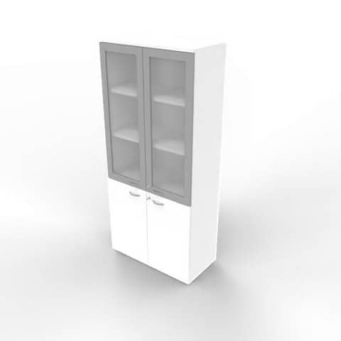 Armadio alto con ante basse bianche e alte in vetro telaio MDF scocca bianca 90x45xH.200 cm – ECE490T-BA-BA-V3