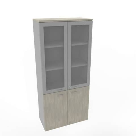Armadio alto con ante basse cemento e alte in vetro telaio MDF scocca trama antracite 90x45xH.200 cm
