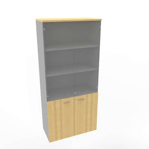 Armadio alto con ante basse faggio e alte in vetro scocca trama antracite 90x45xH.200 cm – ECE490V-FA-TA-GE