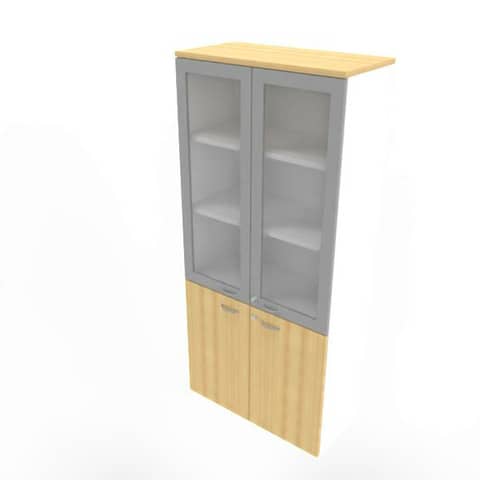 Armadio alto con ante basse faggio e alte in vetro telaio MDF scocca bianca 90x45xH.200 cm – ECE490T-FA-BA-V3
