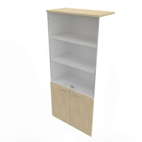 Armadio alto con ante basse rovere e alte in vetro scocca bianca 90x45xH.200 cm Practika – ECE490V-RK-BA-GE