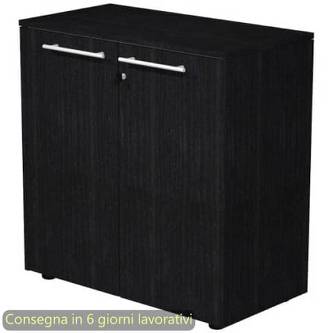 Armadio basso con ante in melaminico con serratura 82,8x43xH.81,4 cm Flora Artexport nero venato frassino