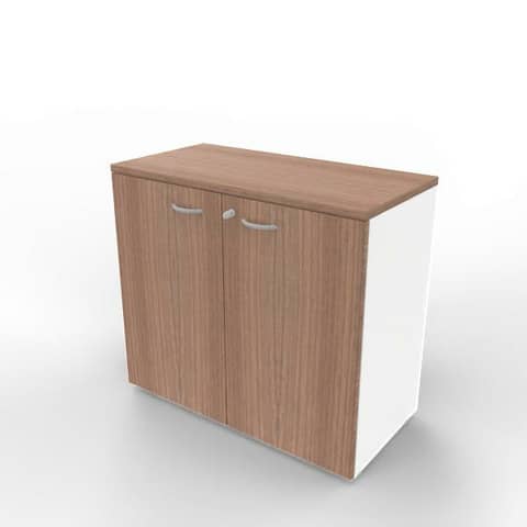 Armadio basso con ante noce canaletto scocca bianca 90x45xH.81,5 cm linea Practika Quadrifoglio – ECEB90B-NO-BA-NO