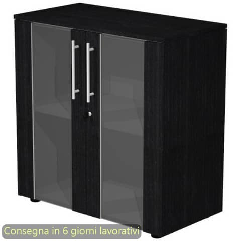 Armadio basso con ante vetro-melaminico con serratura 82,8x43xH.81,4 cm Flora Artexport nero venato frassino