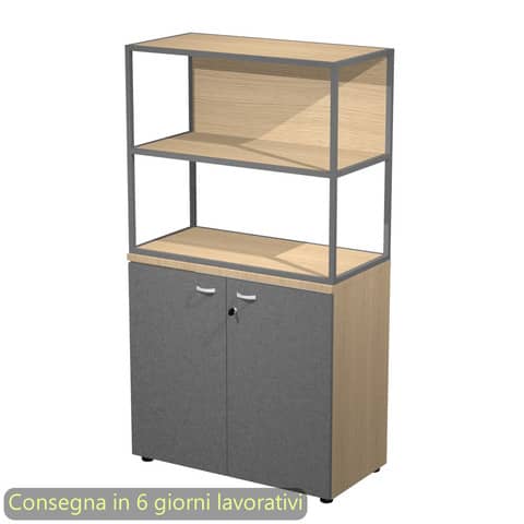 Armadio basso rovere ante antracite con libreria metallica antracite – ripiani rovere 90x46xH.165 cm Artexport Blade