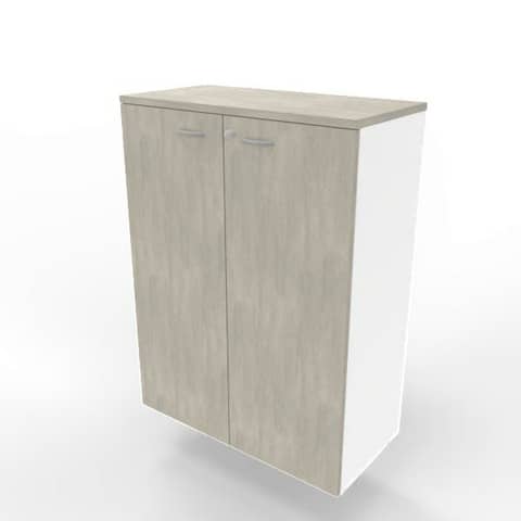 Armadio medio con ante battenti cemento scocca bianca 90x45xH.123,2 cm linea Practika Quadrifoglio – ECEM90M-CL-BA-CL