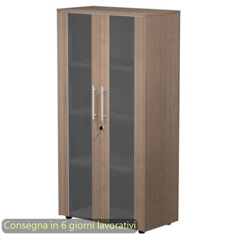Armadio medio/alto con top, fianchi finitura ed ante vetro/melaminico con serratura. Top e fianchi di finitura con spessore 14 mm. Colore: ciliegio arabis. Dimensioni: 82,8x43xH.158,2 cm. Produzione interna Artexport della parte in legno certificata Iso 9001. Certificazioni FSC e PEFC. Imballi totalmente in cartone per un facile riciclo, a basso impatto ambientale.