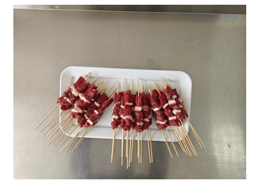 Ogni spiedino viene realizzato interamente a mano, con carne di pecora selezionata, tagliata a coltello e infilata con cura secondo l’antica tecnica tramandata da generazioni.