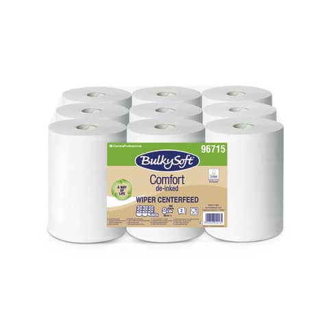 Asciugamani in rotoli Bulkysoft Comfort a estrazione interna – 200 strappi – 2 veli – 30 cm x 60 m cf. 9 pz – 96715.E10