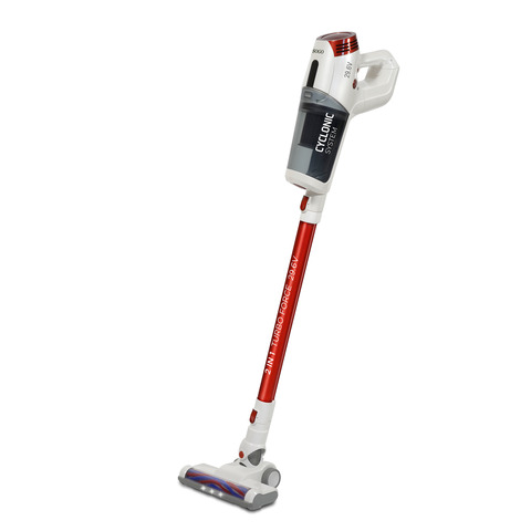 Aspirapolvere verticale a bastone ricaricabile. Sistema ciclonico (senza sacchetto). Funzioni manuali. Funziona con 29,6 V – batterie agli ioni di litio da 2200 mAh. Durata media: 30 minuti (alta velocità ) e 45 minuti (bassa velocità ). Tempo di ricarica 4-5 ore. Capacit? del serbatoio della polvere: 700 ml. Con indicatore LED. Potenza del vuoto: 7kpa (bassa velocità )/ 10kpa (alta velocità ). Rumorosit?: <75db. Con spazzola motorizzata con 4 luci a LED. Interruttore di controllo della velocità on / off. Rotazione di 100? della spazzola in due posizioni. Accessori: adattatore CA, ugello a fessura 2 in 1, e appendiabiti a parete.