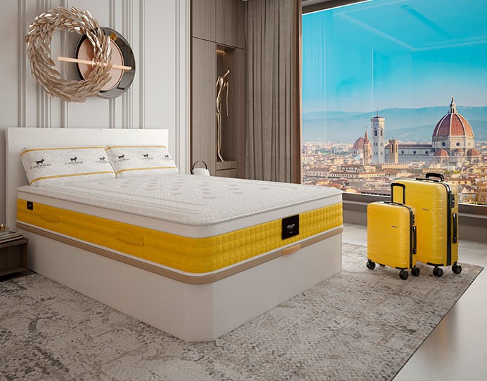 Rivestimento in cashmere: tessuto naturale e ipoallergenico, arricchito con aromaterapia alla vaniglia di macadamia per un’esperienza sensoriale unica.