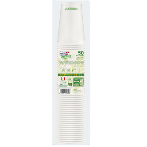 Bicchieri in carta compostabili Dopla Green 350 ml bianco – conf. 50 pz – 33394