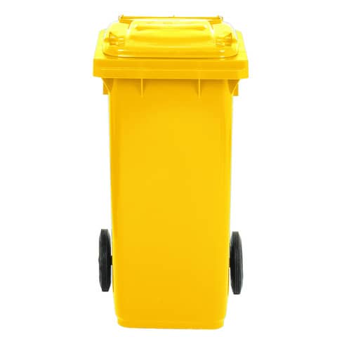 Bidone carrellato per raccolta differenziata 120 lt con coperchio PEHD Mobil Plastic giallo – 1/120/5-GIA