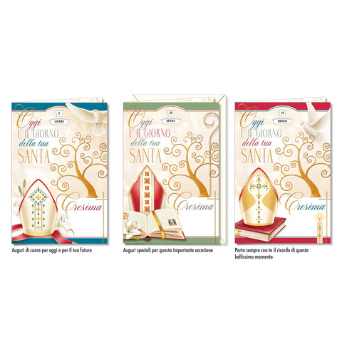 Biglietti augurali Cresima Cromo fantasia albero della vita – conf. 12 pz – assortiti – CR.8189