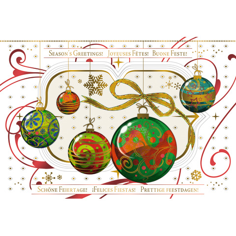 Biglietti augurali natalizi 12 x 18 cm con dettagli in rilievo e sovrastampa metalizzata per renderli ancora più brillanti e ricercati. In confezione da 4 biglietti.
