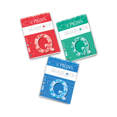 Blocco collato Quablock Pigna con copertina plastificata e retro in cartoncino rigido. Carta interna da 80 grammi. Contiene 50 fogli, ideali come ricambi per cartelle ad anelli, grazie ai 4 fori per l’archiviazione. Rigatura 5M quadrettato. Formato A4.