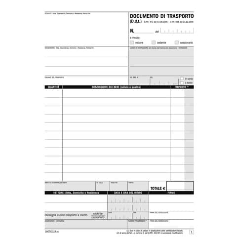 Documento di trasporto, blocco di 33/33/33 copie autoricalcanti, 21,5×14,8 cm
