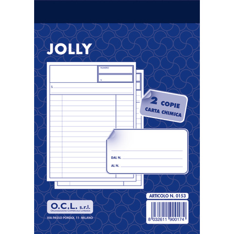 Jolly – blocco 50×2 copie in carta chimica. Formato 10,8×15,3 cm.