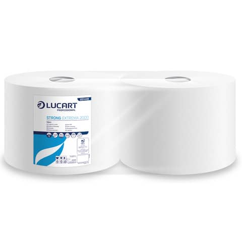 Bobina strofinacci industriali 2 veli pura cellulosa STRONG EXTREMA 2000 2 Lucart 2000 strappi – conf. 2 rotoli