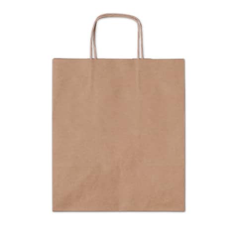 Borsa Pastipack kraft avana con manici in carta ritorta 28x20x32 cm. Grammatura: 110 gr/mq. Confezione da 25 pz.