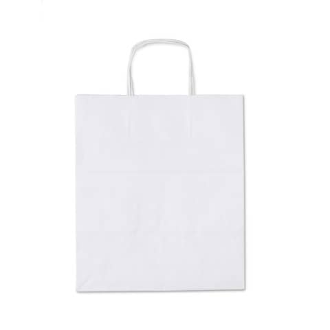 Borsa Pastipack kraft bianco con manici in carta ritorta 28x20x32 cm. Grammatura: 100 gr/mq. Confezione da 25 pz.