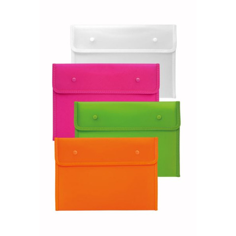 Busta A4 orizzontale linea Neon in robusto PP semirigido con chiusura a 2 bottoni e bordatura in tessuto colorato. Formato 33×23,5 cm. Disponibile in 4 colori assortiti.