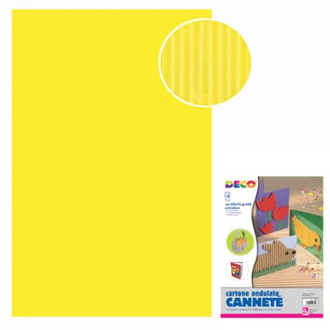 Cannat?, cartone ondulato, duttile e consistente, largamente adoperato nelle attività didattiche, grafiche, cartellonistiche e di cartonaggio. Supporta egregiamente i collanti più difficili. Formato 50×70 cm, busta da 10 fogli, grammatura 230 g/m².