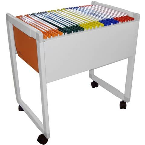Carrello in metallo per cartelle sospese, pu? essere utilizzato sia con cartelle di interasse 33 cm sia di 39 cm. ed – facilmente regolabile grazie ad appositi inviti a scatto;