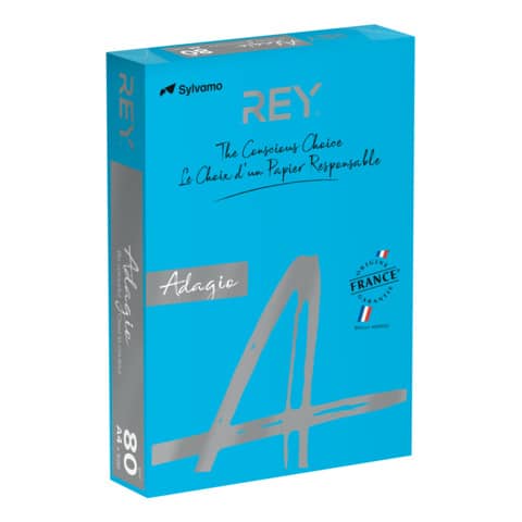 Rey Adagio offre una vasta gamma di carte colorate per aiutare nell’organizzazione dei documenti e per migliorare la comunicazione. Pratica confezione, risigillabile e trasparente per l?immediata identificazione del colore. Formato A4. Colore blu intenso, grammatura 80 g/m², risma da 500 fogli.