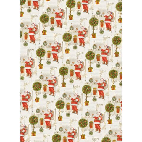 Pregiata carta da regalo Natalizia a fogli estesi lavorata con metal, dettagli oro. Formato 70×100 cm. Qualità Premium. Confezione composta da 2 fogli.