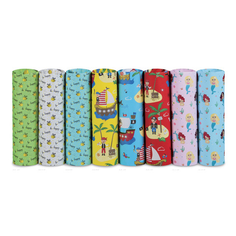 Confezione da 50 fogli di Ecocarta da regalo Bimbi riciclata 100%. Formato 70×100 cm.
