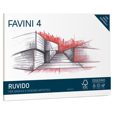 Cartangolo da disegno Favini 4 f.to 24×33 cm 20 fogli da 220 g/m2 ruvido neutro – A168504