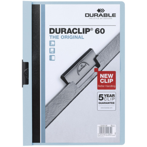 Cartellina con clip Durable DURACLIP? A4 – dorso 6 mm – capacità 60 fogli azzurro – 220906