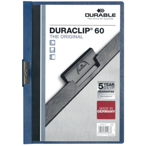 Cartellina con clip Durable DURACLIP? A4 – dorso 6 mm – capacità 60 fogli blu – 220907