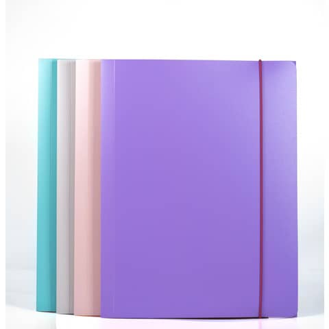 Confezione assortita 4 cartelline a tre lembi reversibili. Doppio colore interno/esterno. La confezione comprende anche 4 elastici aggiuntivi per la personalizzazione da parte dell’utilizzatore. Realizzate in PPL 0,6 mm. Tre alette a cordonatura multipla sorreggono saldamente qualunque tipo di documento in formato A4. Chiusura con elastico. Indistruttibili e 100% riciclabili, resistenti all’umidit?. Confezione da 4 colori assortiti: viola/fucsia, celeste/sabbia, acquamarina/arancio, rosa/giallo.