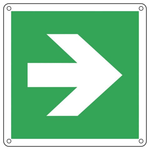 Cartello d’emergenza. ”Freccia a destra/sinistra”. Solo simbolo. Sfondo verde. EN ISO 7010. Alluminio piano spessore 5/10. Dimensioni: 25×25 cm