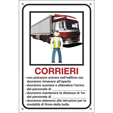 Cartello informativo 20×30 cm Cartelli Segnalatori ”Corrieri, personalizzabile” 35333