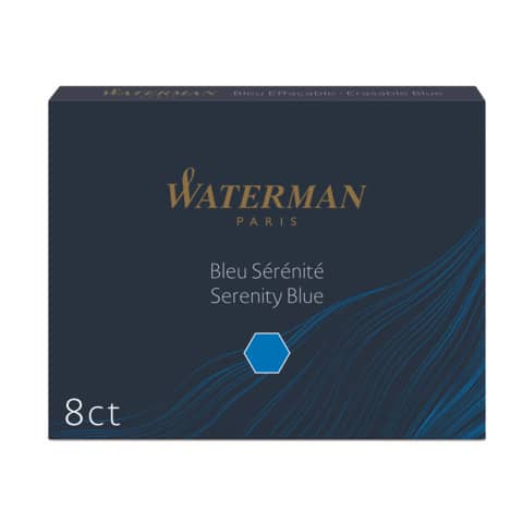 Lascia che le tue idee fluiscano liberamente sulla pagina con una gamma di inchiostri unici e avventurosi come la tua immaginazione. Formula di alta qualità per prestazioni e comfort di scrittura superiori. Compatibile con tutte le penne stilografiche Waterman. Scatola da 8 cartucce d’inchiostro. Colore: blu.