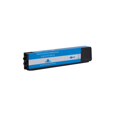 Cartuccia compatibile HP 973X – F6T81AE, colore ciano. Resa: 7000 pagine. Compatibile con i seguenti modelli: HP PageWide P55250dw, P57750dw, PageWide Pro 452, 452dw, 477, 477dw, 552, 577.