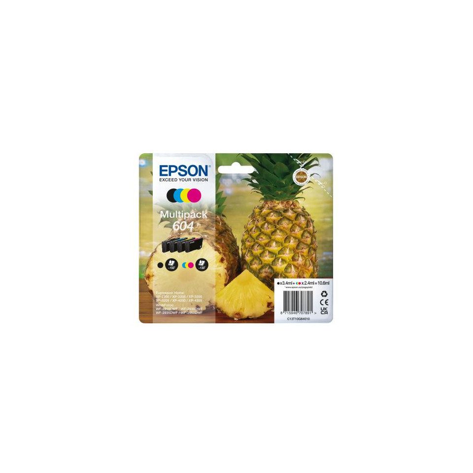 Cartuccia Epson 604 Multipack nero, ciano, magenta e giallo, resa: fino a 150 pagine il nero e 130 pagine i colori. Compabile con: Epson Expression Home XP-2200, XP-2205, XP-3205, XP-4200, XP-4205 – Epson WorkForce WF-2910DWF, WF-2930DWF, WF-2935DWF, WF-2950DWF.